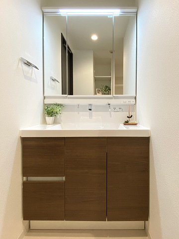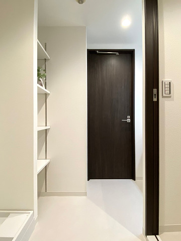11階建ての最上階、南西・南東角住戸と特別感満載の住戸をご紹介しました。深い木目調を基調としたシンプルな内装で、どんな家具を置いてもすっとお部屋に馴染んでくれそうなお部屋です♡こちらのお部屋の魅力は、最上階角部屋ならではの眺望や陽当たりの良さはもちろん、サニタリールームも個人的な推しポイントです!広々とした空間に洗面化粧台・洗濯機置き場・バスルーム・トイレがまとまっており、リネン庫として使えそうな可動棚まであるので、効率的にお使いいただけそうですよ。一点だけ、お部屋にいると周囲の音がちょっぴり気になるように感じました。音の感じ方は個人差があるので、実際に現地でご確認くださいね。 ライター:井出【22G29】