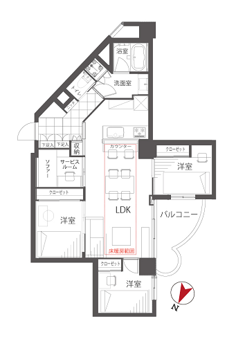 高級感漂うお洒落タウン、白金高輪駅から7分のヴィンテージマンションをご紹介しました✦『三田ハウス』は大通りから脇道を少し進んだ位置に建っており、とても静かな住環境です。お邪魔したお部屋は煌びやかな内装が目を惹く3SLDKで、所在階は3階。こだわりの照明や飾り棚、大理石貼りの玄関、サービスルーム、充実した設備、収納スペースと見どころがたくさんありましたね♡間取図を見ると左上の部分が尖った形なのですが、サニタリールームに続く廊下を斜めに通すことで、居室は全て四角形に。最大限デッドスペースをなくした素晴らしい造りです。憧れの白金高輪に佇む、コンシェルジュサービス付きのヴィンテージマンション♡思い描いたゆとりある生活を実現するチャンスですよ。 ライター:加藤【22J31】