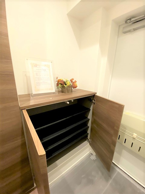 シューズボックスはこぢんまりとしているので、オフシーズンの靴はお部屋の収納にしまう事になりそうヽ(。>д<)pカウンターに思い出の写真を飾れば、出入りの度に目にすることが出来ます☆
