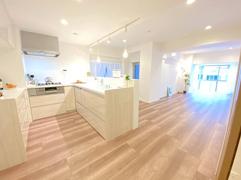 約20.0帖の開放感溢れる広々リビングダイニングキッチン(*^▽^*)奥行きのあるL字型のお部屋で、テーブルやソファを置いても十分な広さを感じられます♪