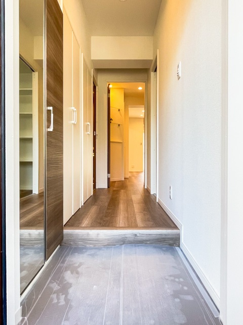 今回ご紹介するのは、4階部分にあるお部屋です。玄関は上り框に高さを設け、外からの汚れを持ち込みにくい仕様。シューズボックスは姿見付きで高さがあります☆