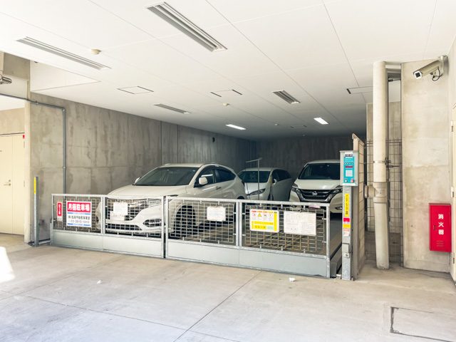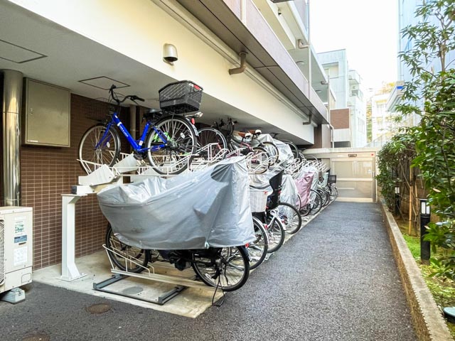 駐車場は立体式。駐輪場は裏手の、建物に囲まれた場所に用意されています☆