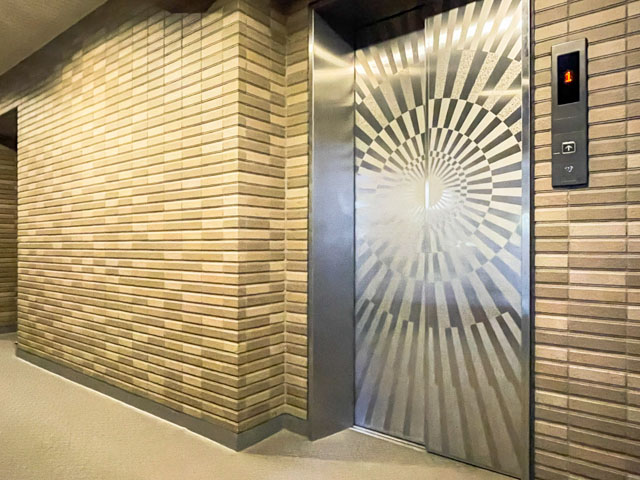 館内は広く、お部屋によってエレベーターが分けられています。デザイン性が高いですね。
