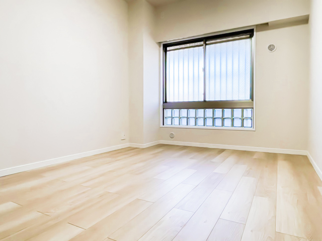 玄関右手にあるこちらは約7帖の広さを持つ洋室です。窓のほか、壁の一面を占めるクローゼットを備えています。