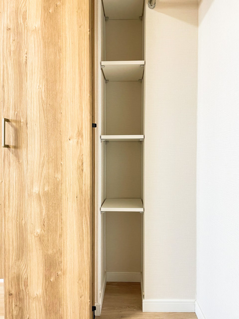 クローゼットの左端には、棚が設けられています。棚板の高さは自由に調節することができますよ★
