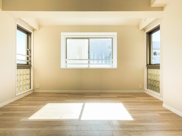 こちらの洋室は約8.6帖の広さを持ち、窓は3面。中央の窓は出窓で、カウンターとしても使用可能です★