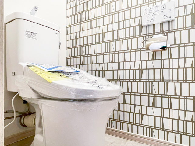 トイレは手洗い一体型のものを採用。デザインクロスを採用することで、無機質になりがちな空間をモダンに仕上げています☆