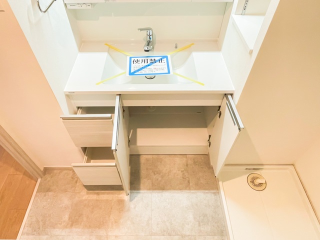 洗面台周りは大小様々な収納があり、整理整頓がはかどることでしょう。また、幅にも余裕があり、洗面ボウルも大きめ。使いやすさが見てとれますね。