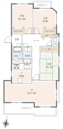 数か所にバルコニーがあるこちらの3方角部屋。価格はリノベーションした場合の金額なので、今の状態で暮らす場合は購入価格がお得になりますよ✿是非、現地でお部屋の様子を確認してみてください♪